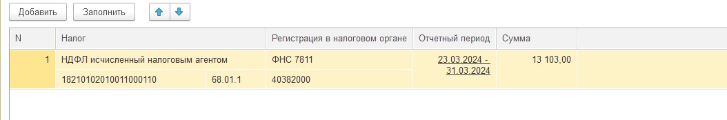 За 1 квартал. 25 .03.24 заплатил НДФЛ с аванса 13103. Подал уведомление об уплате НДФЛ 02.04.2024