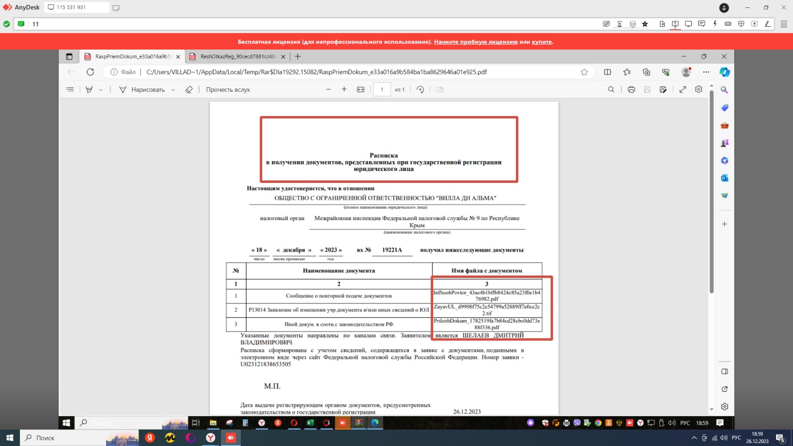 при этом вот расписка , где Р13014 форме тиф и свидетельство нотариуса ПДФ, что здесь не так? Был приложен еще файл, в 1 пдф ( там свид нотариальное и сшитый 13014) Внесение_учредителя_нотариальное.pdf (7,1 МБ)
